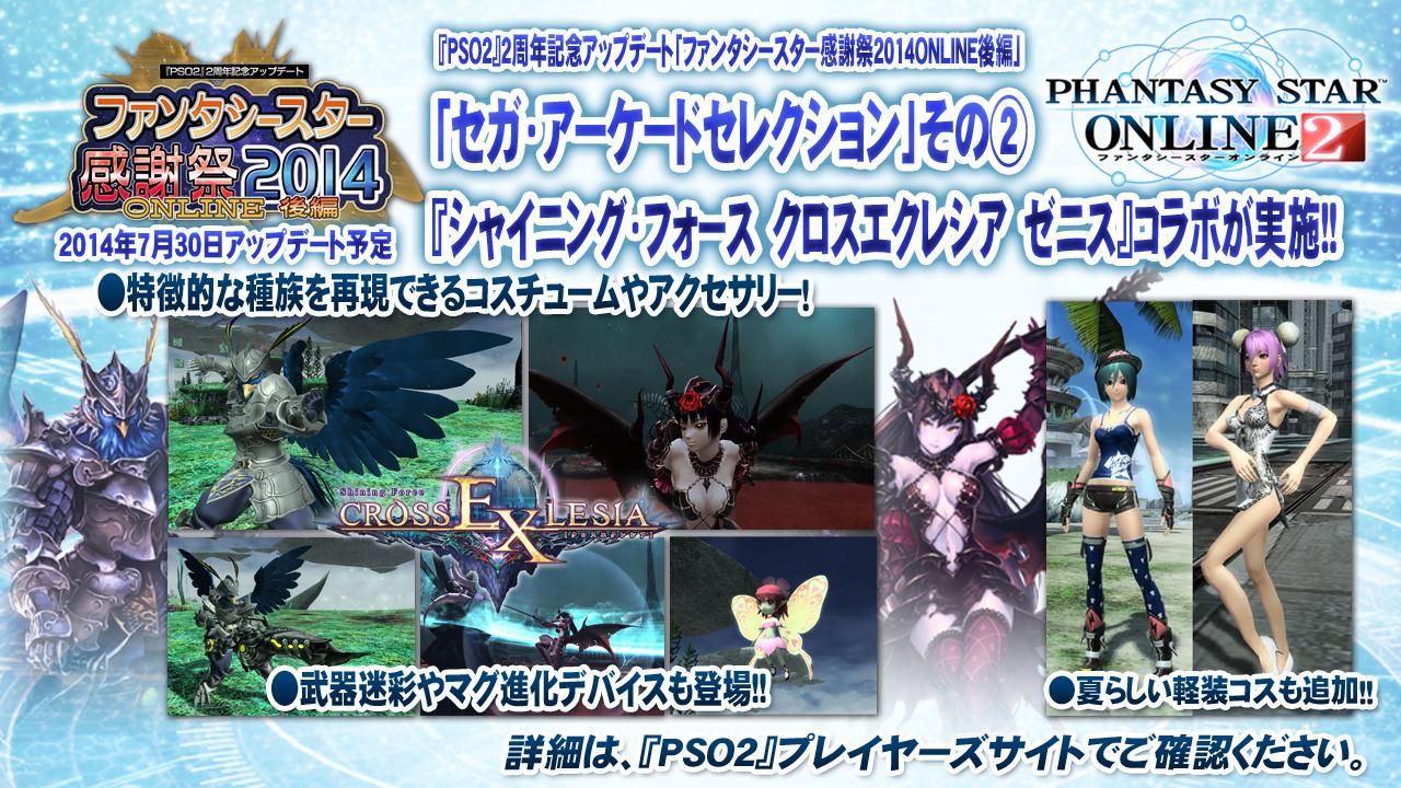 Phantasystaronline2 On Twitter Pso2放送局 第22回放送中 7 30アップデート ファンタシースター感謝祭2014online後編 Part1情報 シャイニング フォース クロスエクレシア ゼニス とのコラボアイテム登場です Pso2 Http T Co Qaq6clrnar