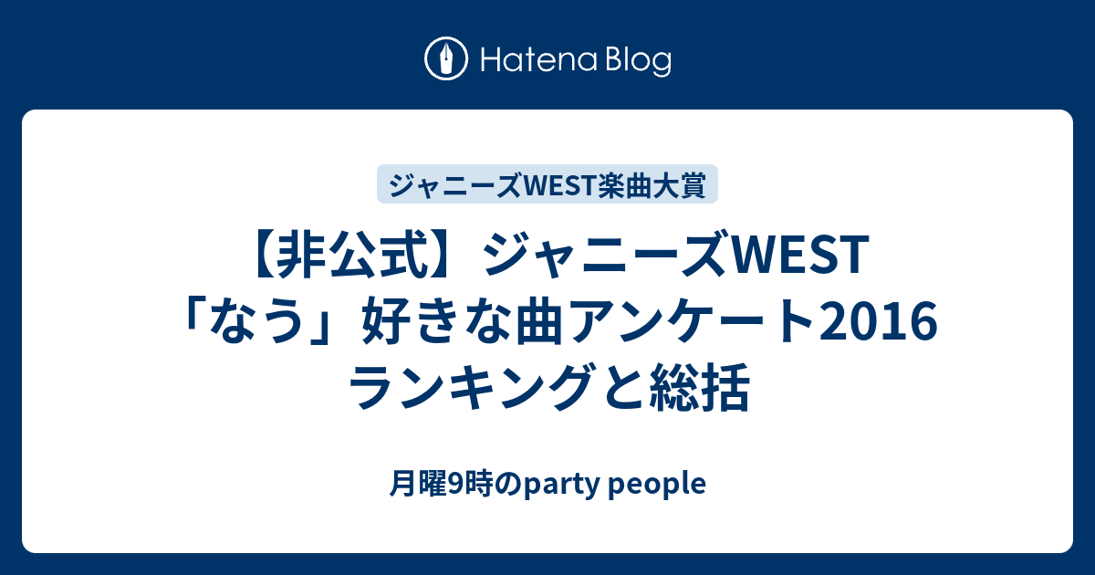 非公式 ジャニーズwest なう 好きな曲アンケート2016 ランキングと総括 月曜9時のparty People