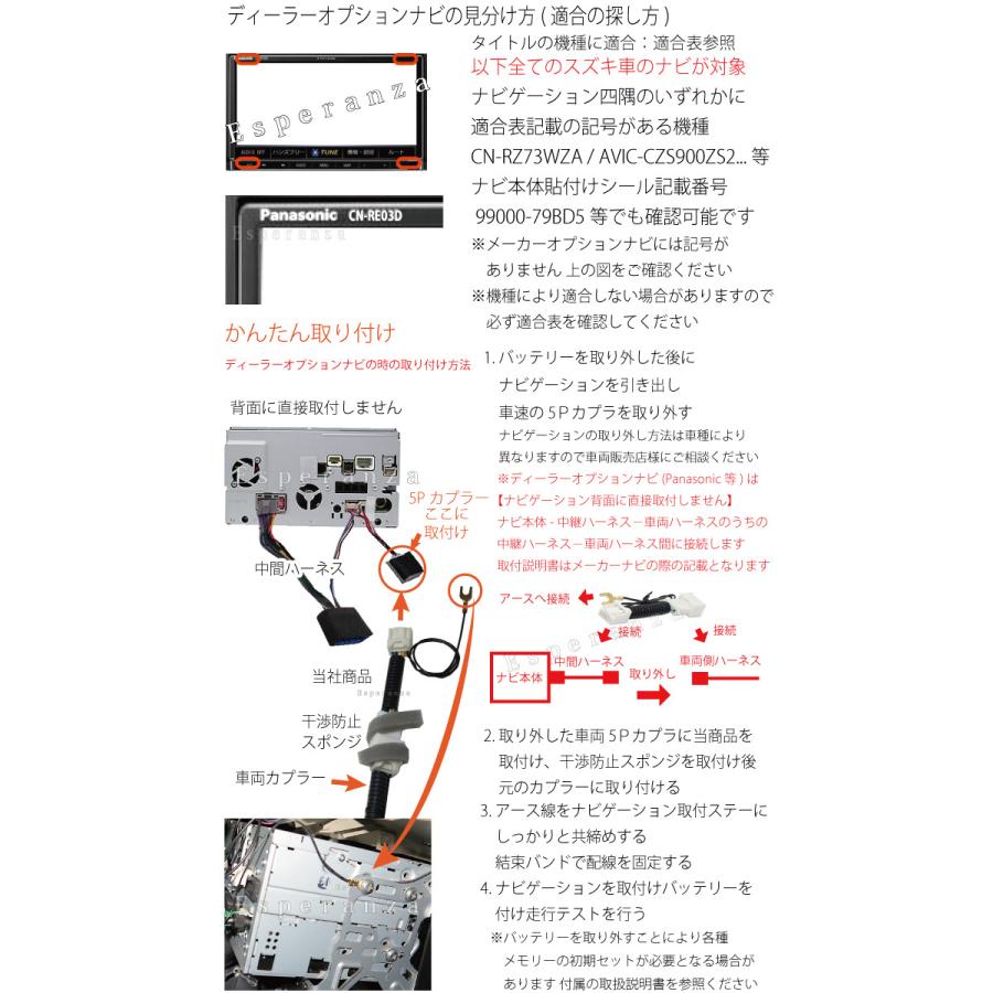 Amazon Esperanza 取付説明書付き Suzuki スズキ車用 テレビキットナビキット 現行ナビ 2013年製 パナソニック カロッツェリア ケンウッド 製ナビ対応 Panasonic Carrozzeria Kenwood 走行中テレビが見れるナビ操作 スズキテレビキット テレナビキット