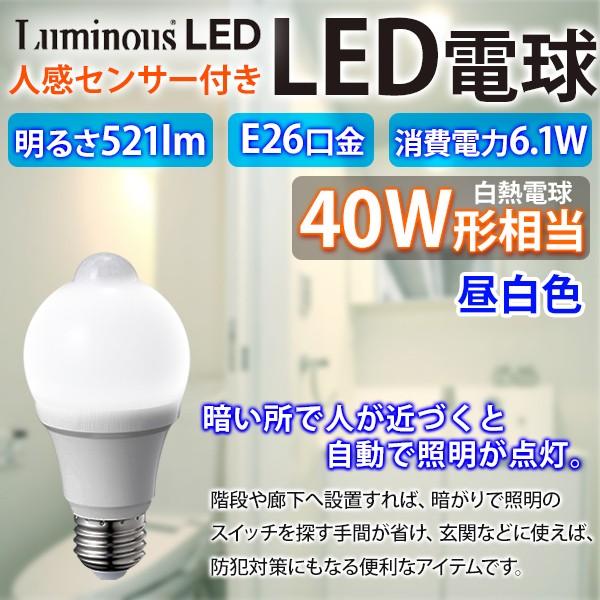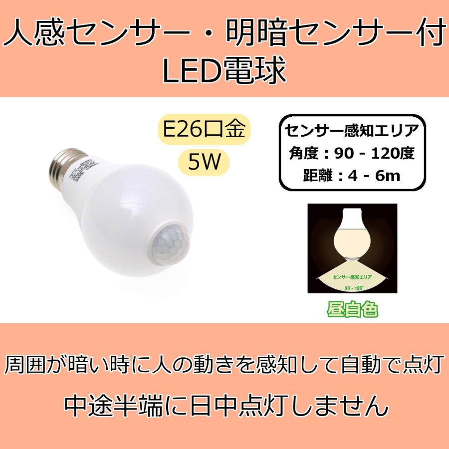人感センサー付きled電球 人感センサー 電球 人感センサーライト 昼白色 40w形相当 小型 明暗センサー Ledライト E26口金 照明 交換 自動 点灯 消灯 省エネ 節電 マスダショップ 通販 Paypayモール