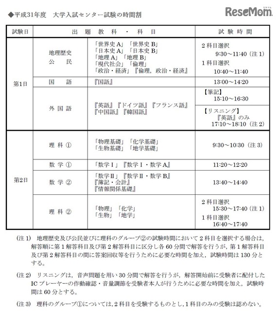 センター試験2019 日程 時間割 中間発表ほか受験スケジュール公開 試験期日は1 19 20 3枚目の写真 画像 リセマム